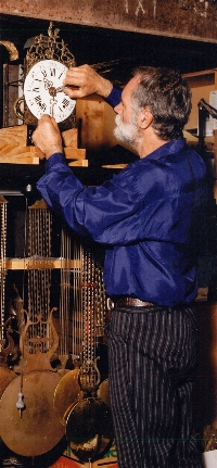 << Je suis né en 1940. Après des études secondaires classiques, j'ai fait un court passage dans l'enseignement. Je suis autodidacte dans toutes mes activités. J'ai débuté dans les métiers d'art par la création de sculptures en laiton repoussé (expositions à Pontarlier et à Genève). J'ai aussi créé, fabriqué et commercialisé des bijoux couturiers et des bas-reliefs en étain repoussé ou coulé (reproductions de sculptures classiques, telles pièces de monnaie celtes, bas-reliefs romans, etc.). Collectionneur puis restaurateur d'horloges comtoises anciennes, j'ai souhaité toute ma vie redonner ses lettres de noblesse à l'horlogerie populaire franc-comtoise, tout en sauvant, dans ma carrière artisanale, plusieurs centaines d'horloges anciennes qui étaient vouées à la casse. A ce titre, j'ai reçu le 1er Prix Départemental des Métiers d'Art en 1972 et j'ai participé au Salon du Patrimoine au Musée du Louvre en 1994. J'ai pu pendant 30 ans accompagner l'engouement des collectionneurs étrangers pour cette horlogerie, et participer à son retour en fabrication, particulièrement avec la maison ODO de Morez. J'ai eu le bonheur d'étudier l'ingéniosité des horlogers du 18ème siècle qui cherchaient des solutions nouvelles et optimales pour les échappements et la sonnerie et d'apprécier leur goût pour la beauté : certaines pièces mécaniques, visibles seulement par l'horloger qui les démonte, sont décorées de ciselures et gravées, et même de confidences (lu par un ami horloger dans un mécanisme " toi qui démonte cette horloge, tu ne sauras jamais combien j'ai été malheureux en ménage "). J'ai été animé en permanence par le souhait de montrer qu'on peut vivre sa vie avec bonheur par la création, qu'elle soit ''abstraite'' ou ''concrète'', (termes que je préfère à ceux de ''intellectuelle'' ou ''manuelle'') et de la volonté de revaloriser le travail dit ''manuel''. Après toutes ces années passées au service des horloges anciennes, avec l'exigence de ne les modifier en rien, je reprends sur le tard la sculpture, en laissant libre mon désir de création, mais en m'imposant les rigueurs de l'astronomie et de la mécanique. >> |